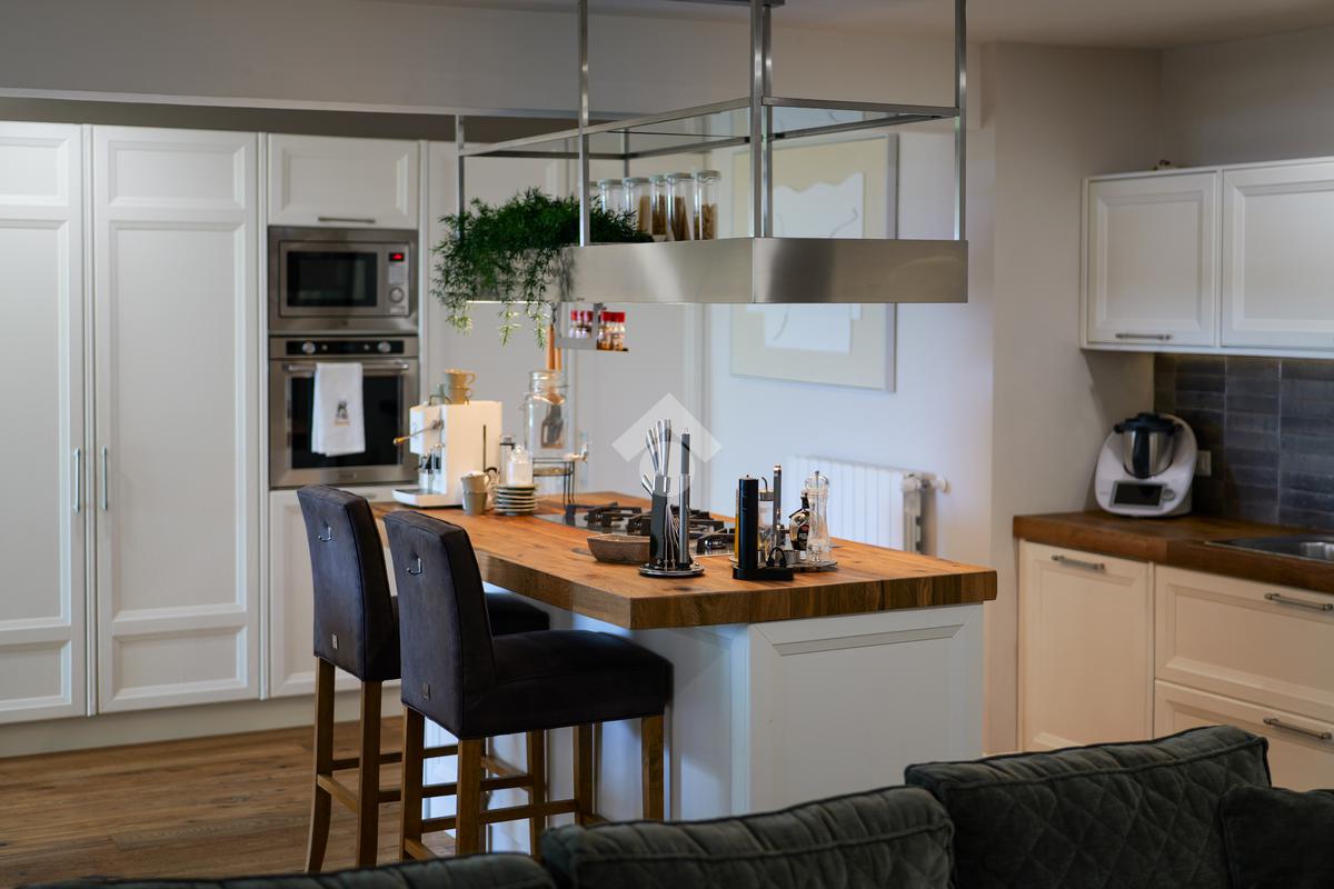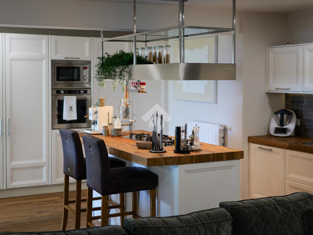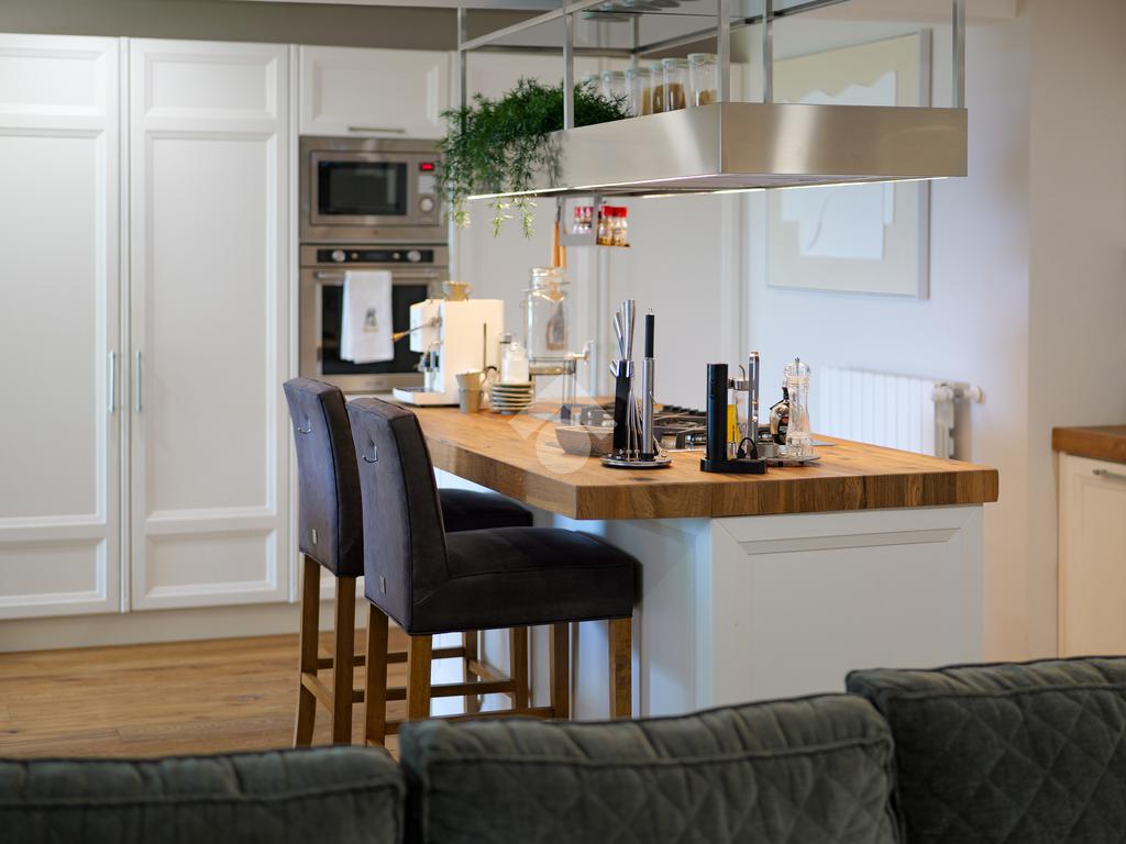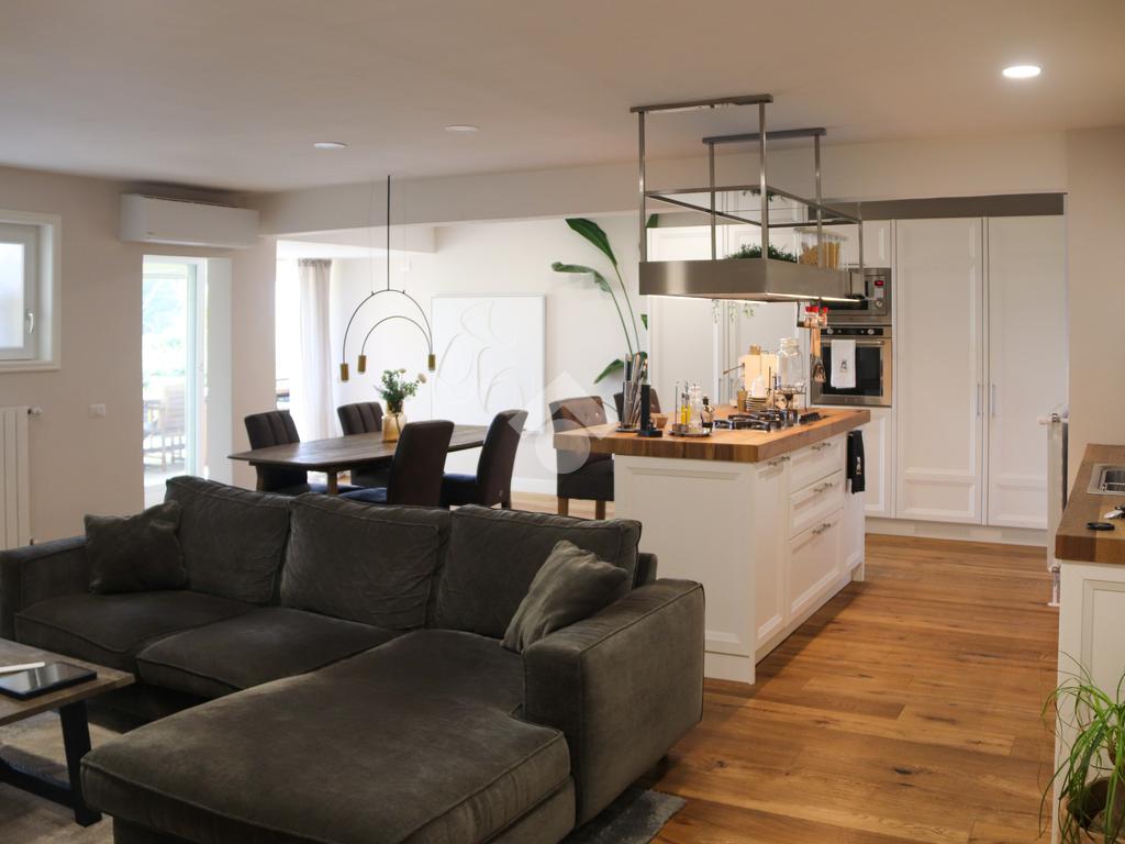 All’interno si sviluppa in un ampio salone open space, elegante e accogliente, con una splendida cucina a isola perfetta per momenti conviviali e cene in compagnia. L’intera abitazione è stata totalmente ristrutturata con materiali di pregio e pavimentata in parquet, che conferisce calore e continuità agli spazi.