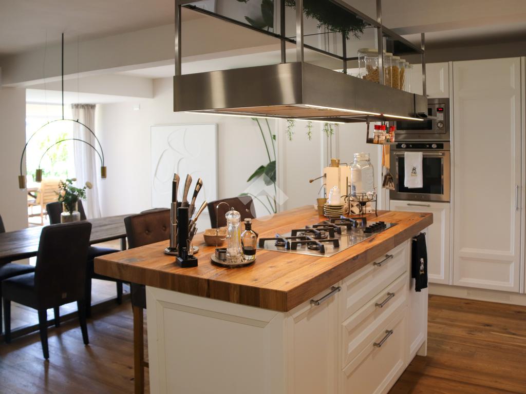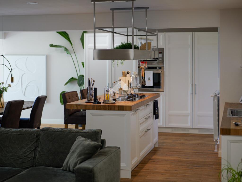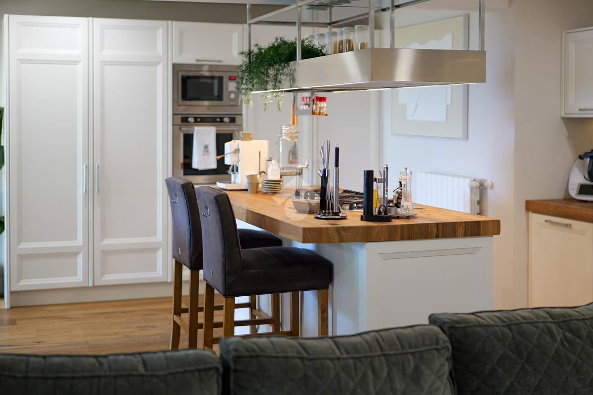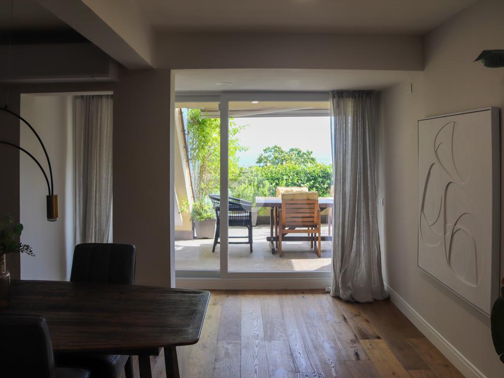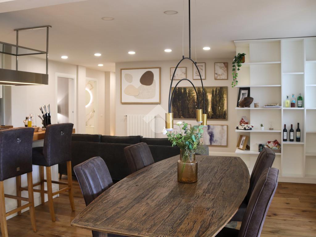 All’interno si sviluppa in un ampio salone open space, elegante e accogliente, con una splendida cucina a isola perfetta per momenti conviviali e cene in compagnia. L’intera abitazione è stata totalmente ristrutturata con materiali di pregio e pavimentata in parquet, che conferisce calore e continuità agli spazi.
