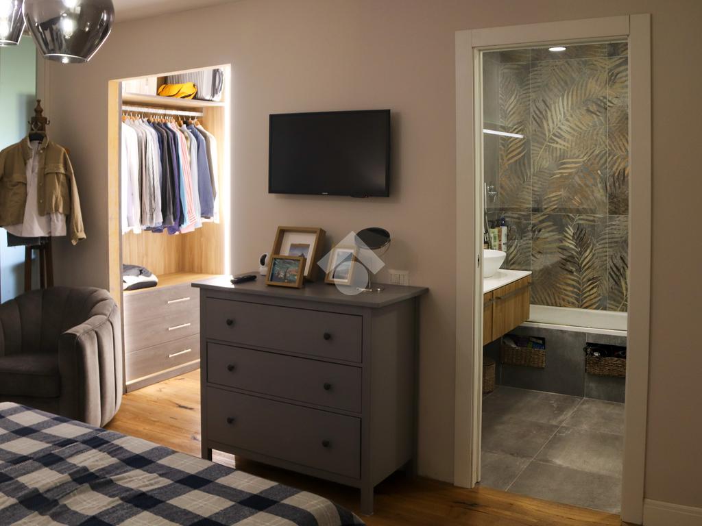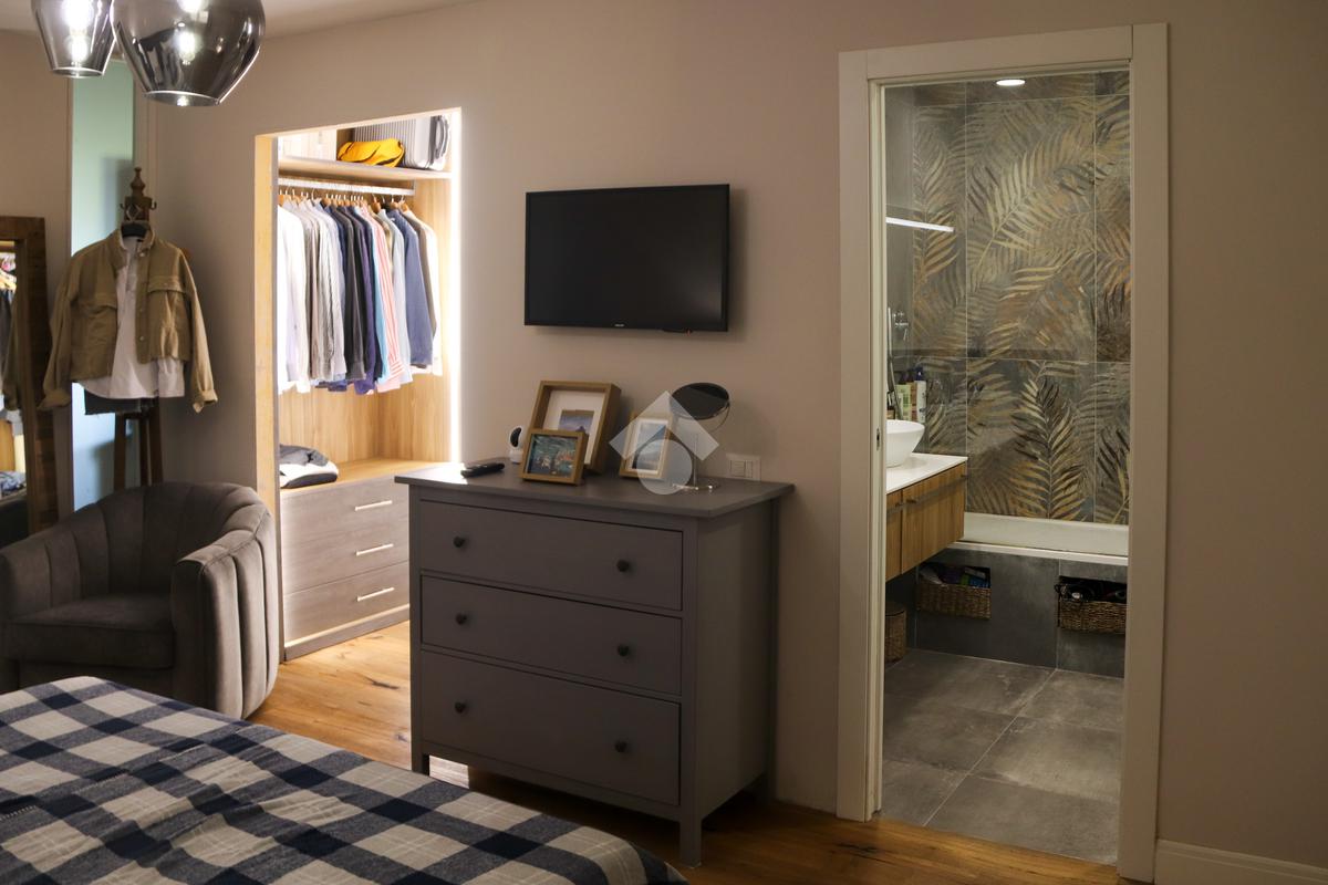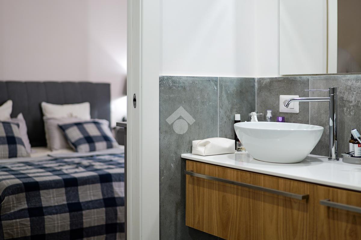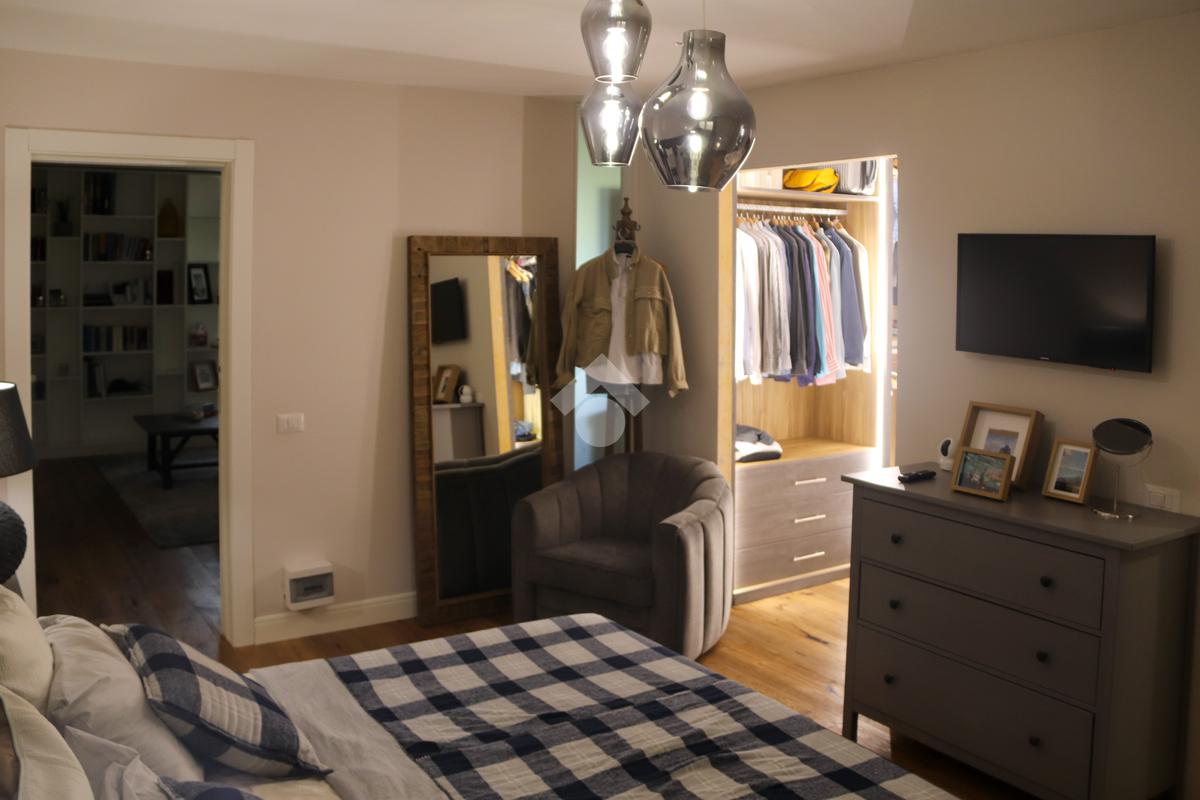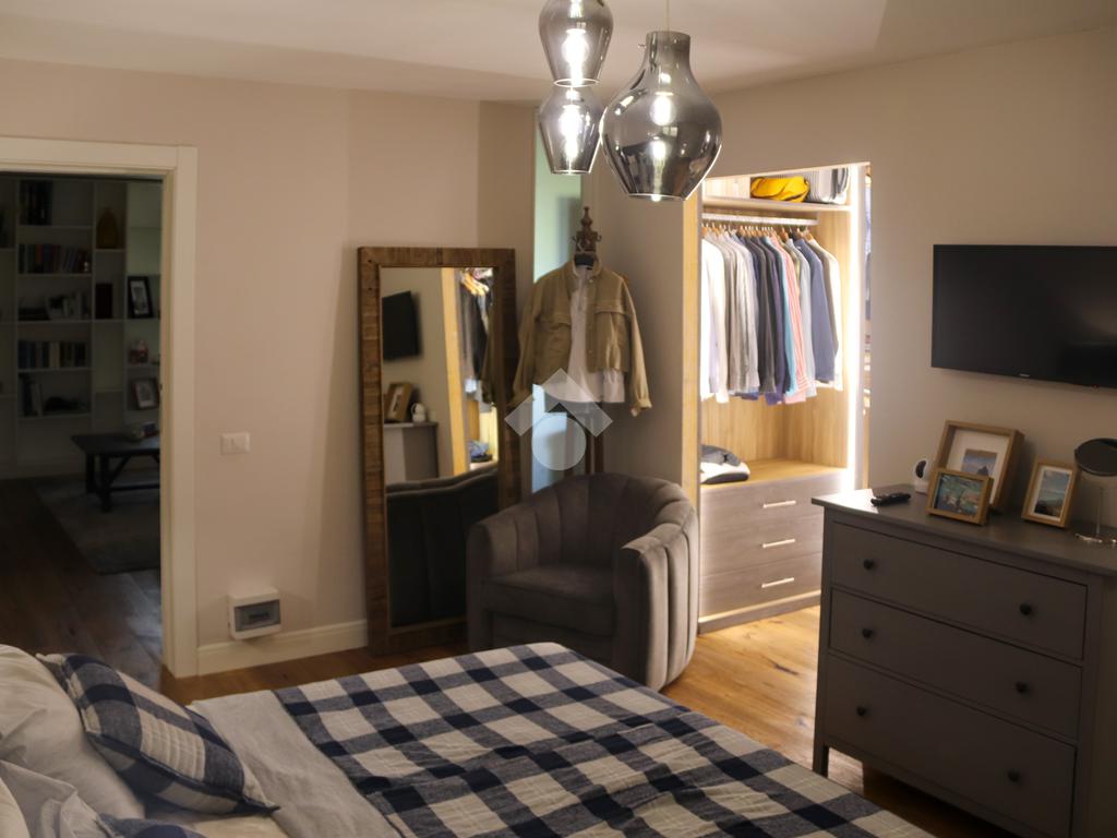 La camera matrimoniale dispone di una comoda cabina armadio e di un bagno privato dal design raffinato. È presente inoltre una seconda camera doppia, attualmente adibita a lavanderia, facilmente riconvertibile in camera da letto o studio, e un secondo bagno con vasca.