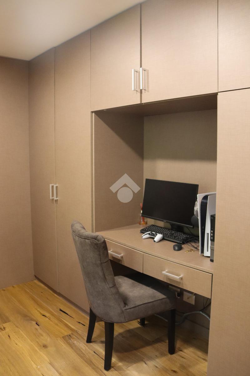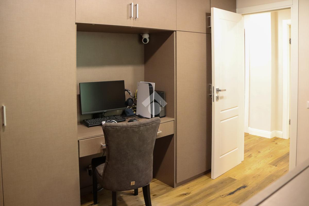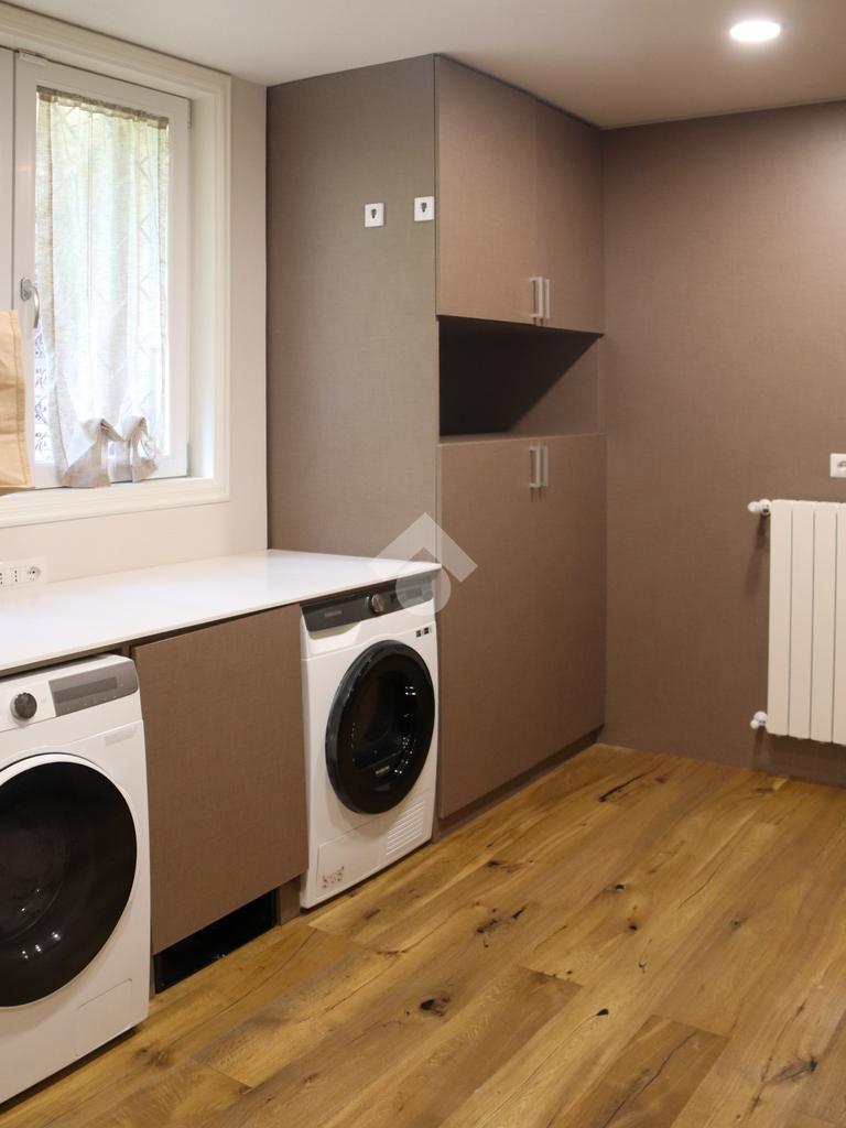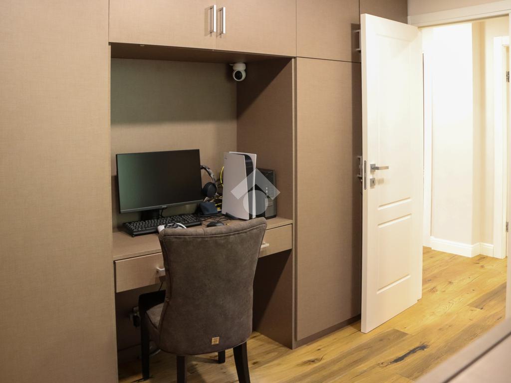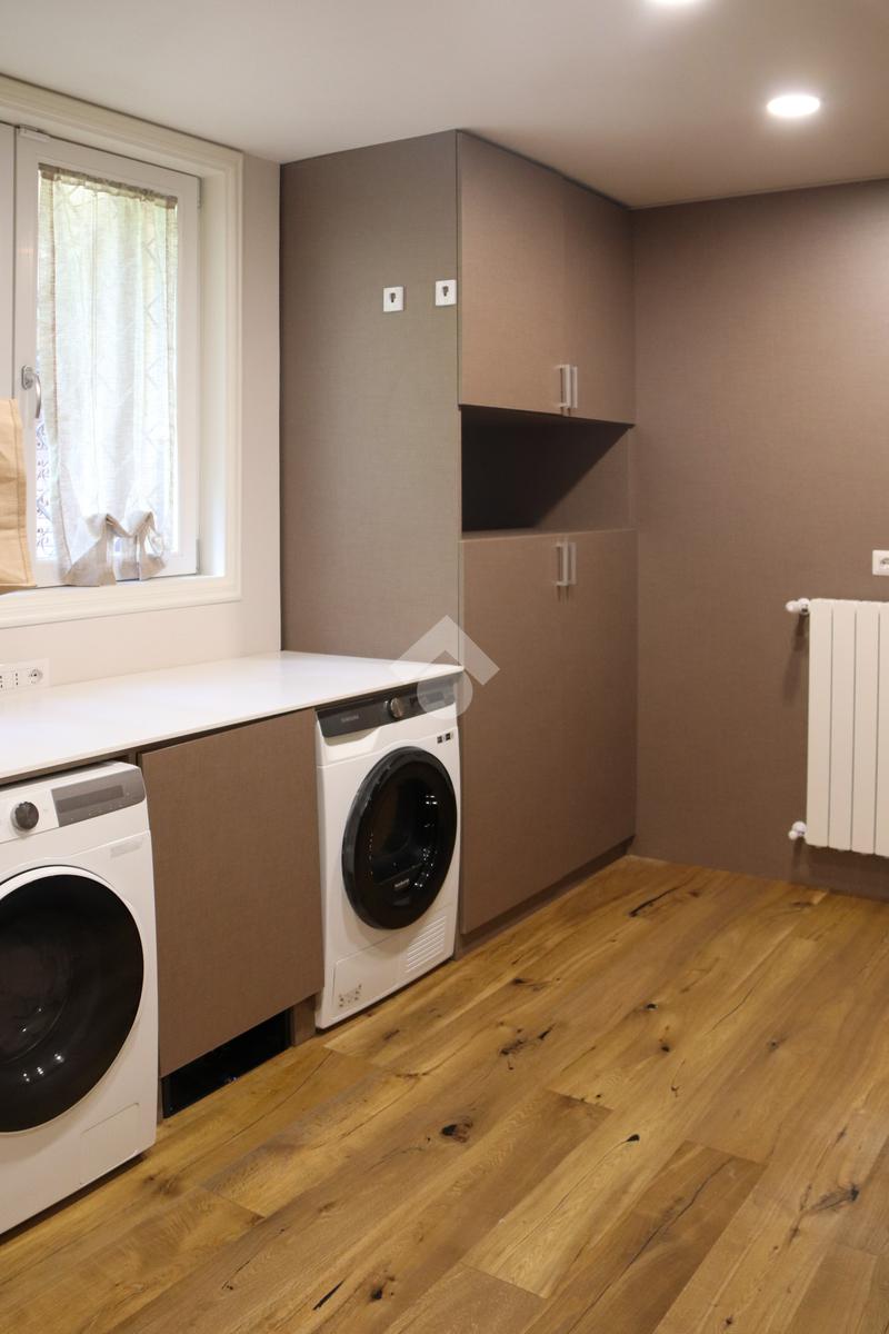 La camera matrimoniale dispone di una comoda cabina armadio e di un bagno privato dal design raffinato. È presente inoltre una seconda camera doppia, attualmente adibita a lavanderia, facilmente riconvertibile in camera da letto o studio, e un secondo bagno con vasca.