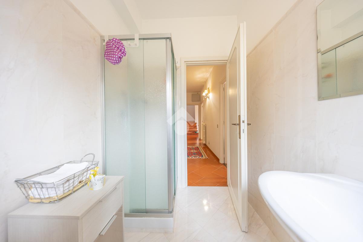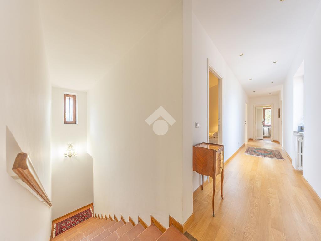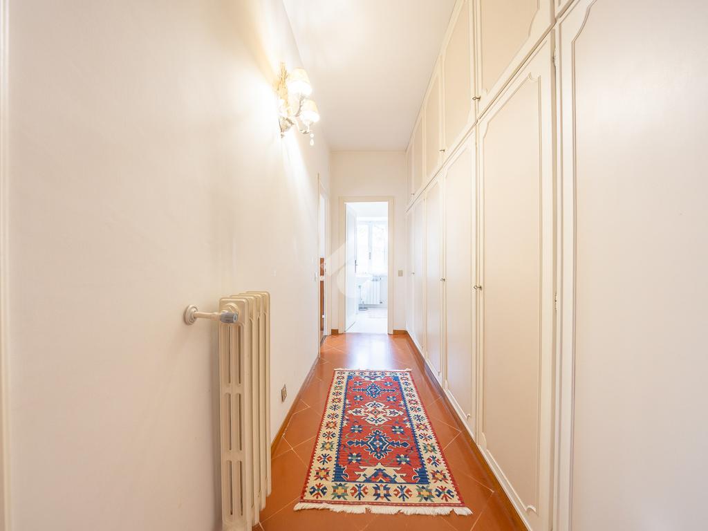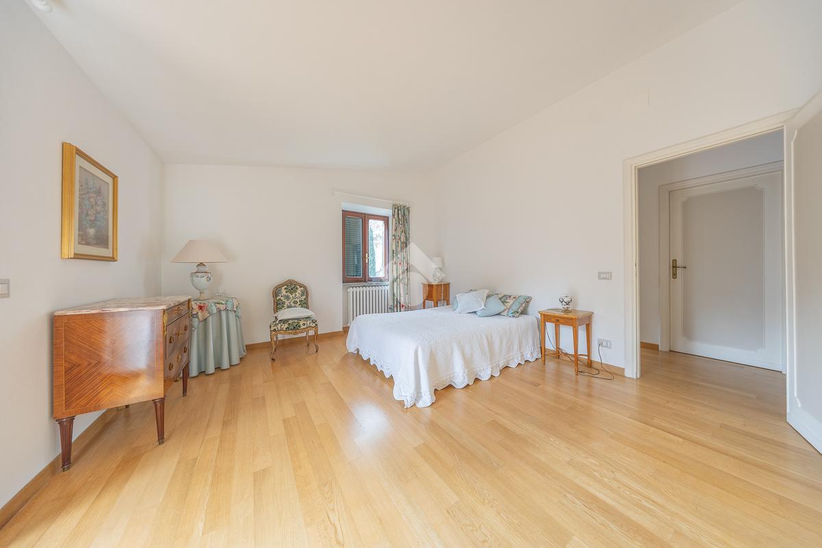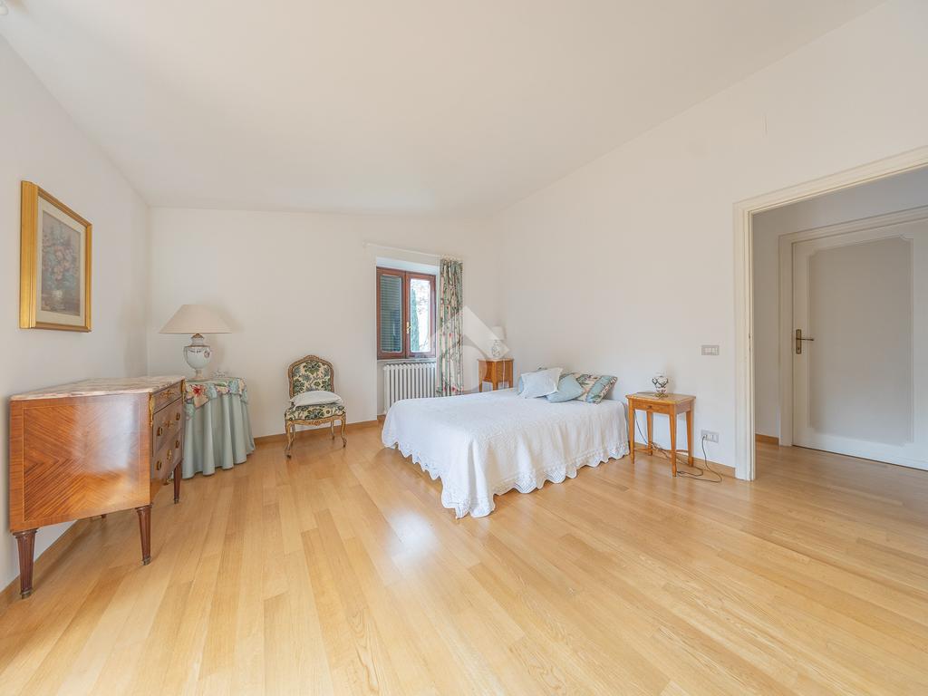 Il piano superiore ospita la zona notte padronale, composta da tre camere matrimoniali di ampia metratura e due bagni finestrati. Da ogni ambiente si gode una vista panoramica mozzafiato su Roma, che rende questo piano particolarmente esclusivo.