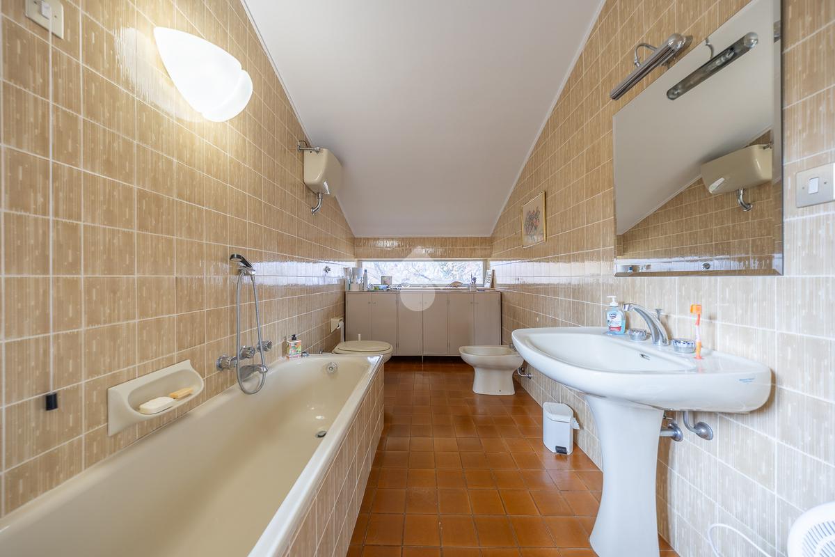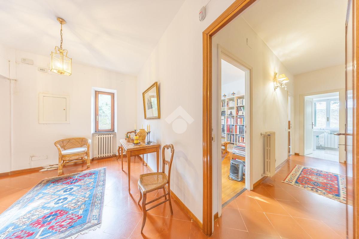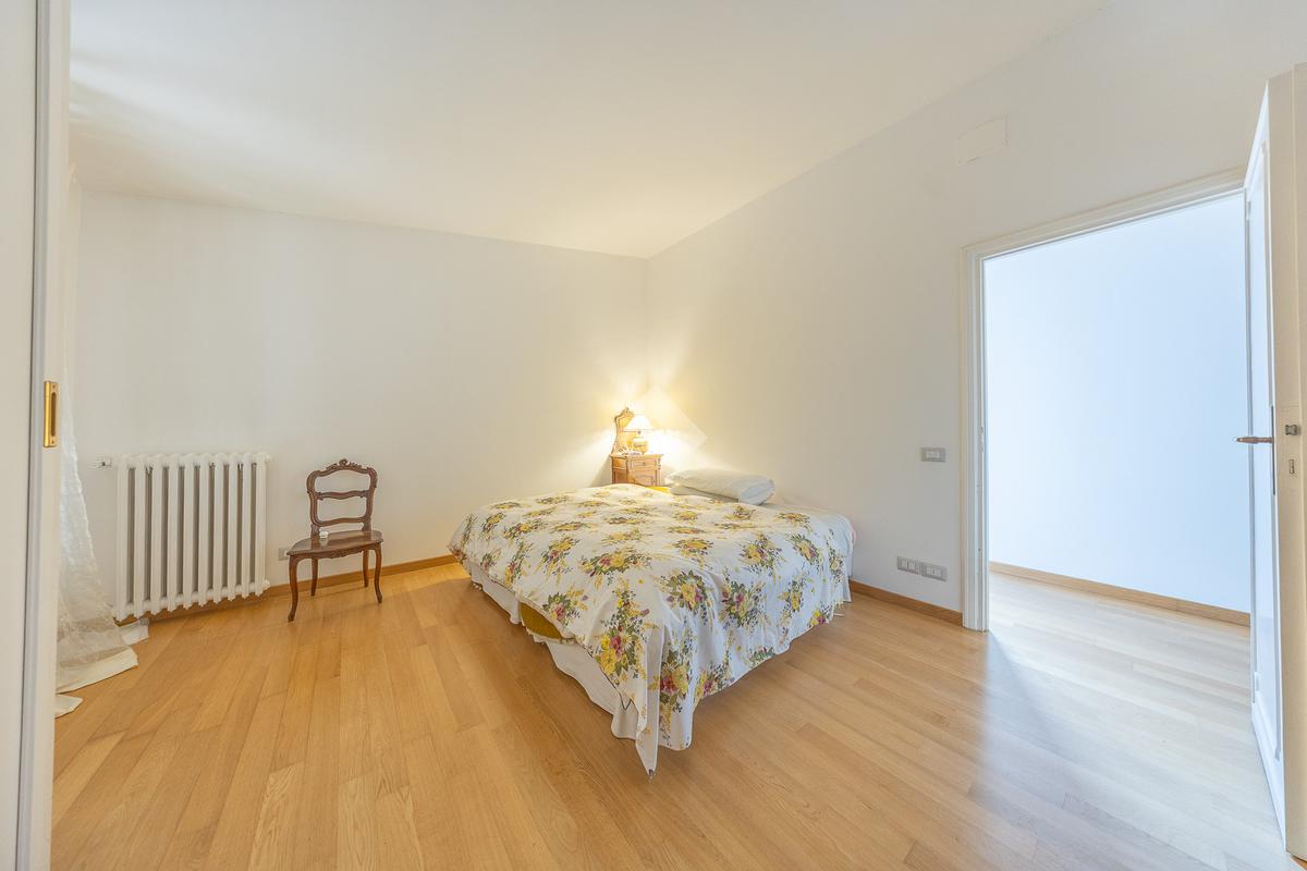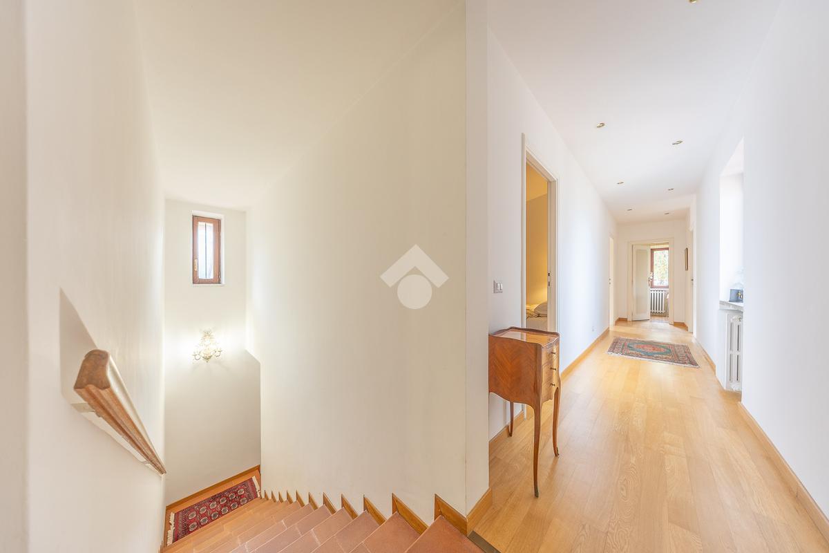 Il piano superiore ospita la zona notte padronale, composta da tre camere matrimoniali di ampia metratura e due bagni finestrati. Da ogni ambiente si gode una vista panoramica mozzafiato su Roma, che rende questo piano particolarmente esclusivo.
